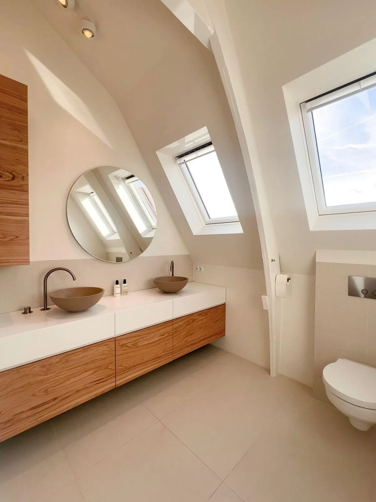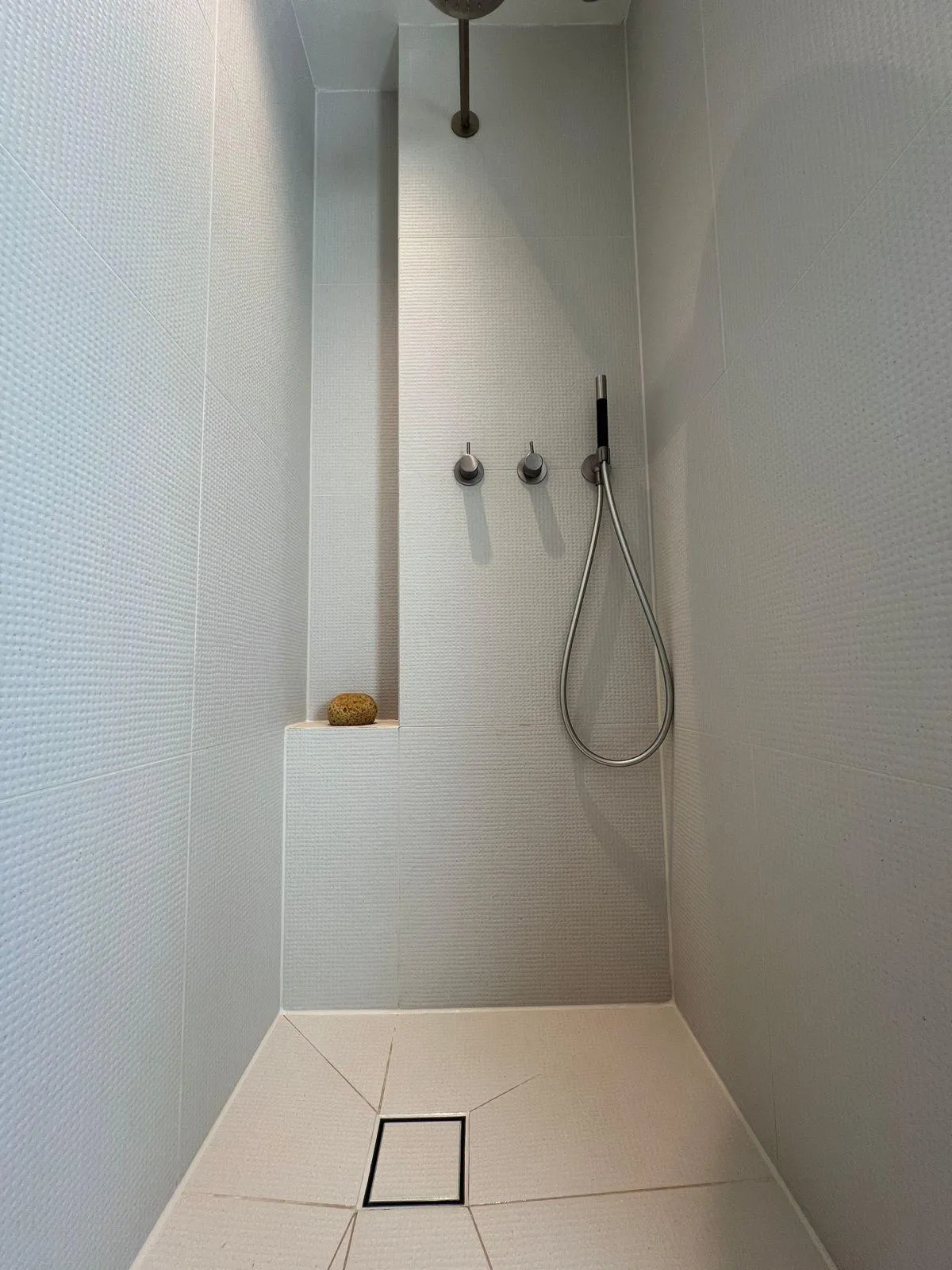 Een groot meubel en een grote inloopdouche zijn meer dan voldoende voor deze opdrachtgevers. Met deze indeling is er heerlijk veel bewegingsruimte.