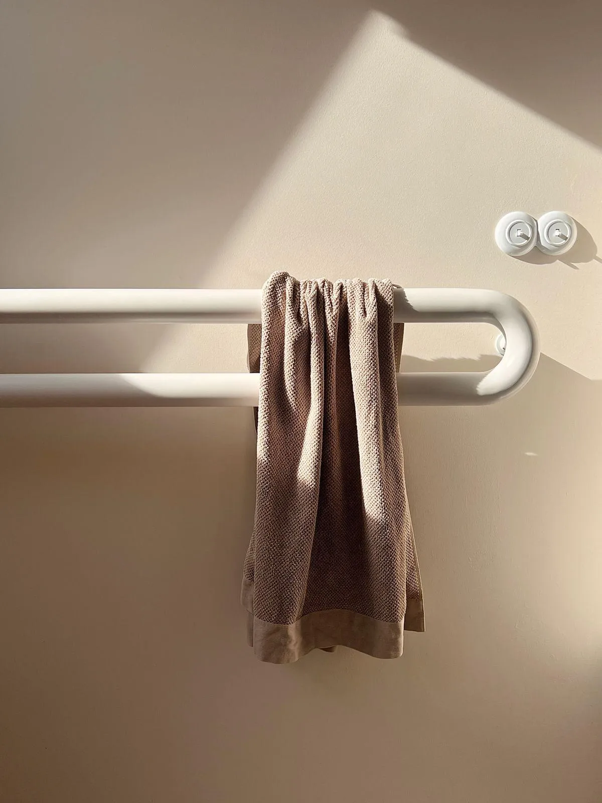 Gebruikte producten: Tegels Mutina Pico up en Pico down, Hothbathkranen, Handdoekradiator Tubone, Maatwerk meubel – ontwerp Inge Bouman